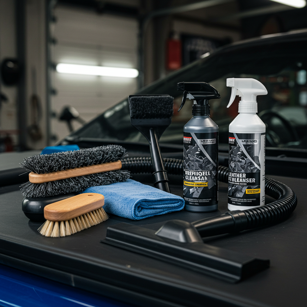 효율적인 실내 세차를 위해 몇 가지 도구와 세제가 필요합니다.