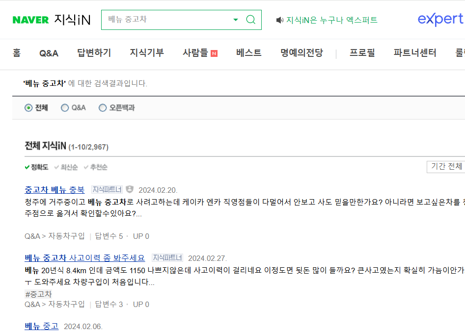 Q: 베뉴 중고차는 어떤 트림이 인기가 많나요?