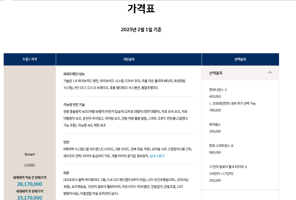 - ✅ 옵션 선택: 개인의 필요에 맞는 옵션 구성을 통해 최적의 차량 선택