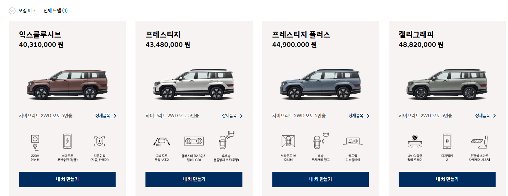 - 프레스티지 플러스 트림: 추가 안전 및 편의 기능 탑재