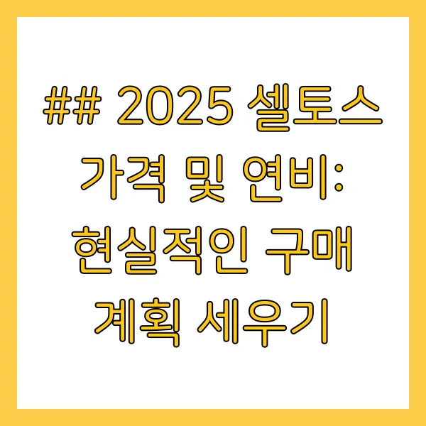 ## 2025 셀토스 가격 및 연비: 현실적인 구매 계획 세우기