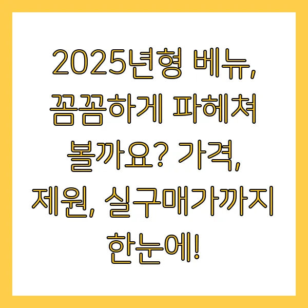 2025년형 베뉴, 꼼꼼하게 파헤쳐 볼까요? 😎 가격, 제원, 실구매가까지 한눈에!