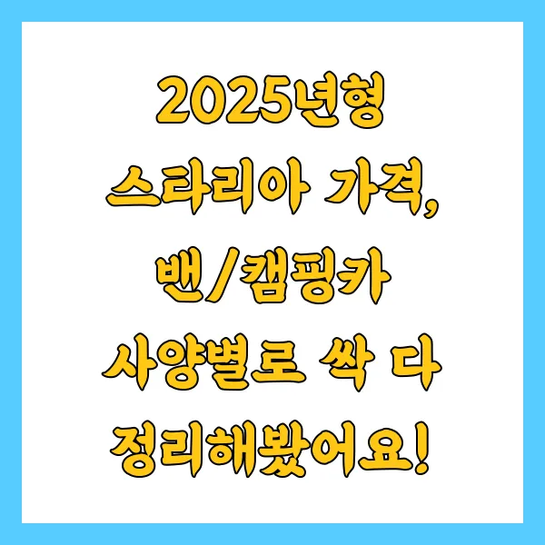2025년형 스타리아 가격, 밴/캠핑카 사양별로 싹 다 정리해봤어요! 😉