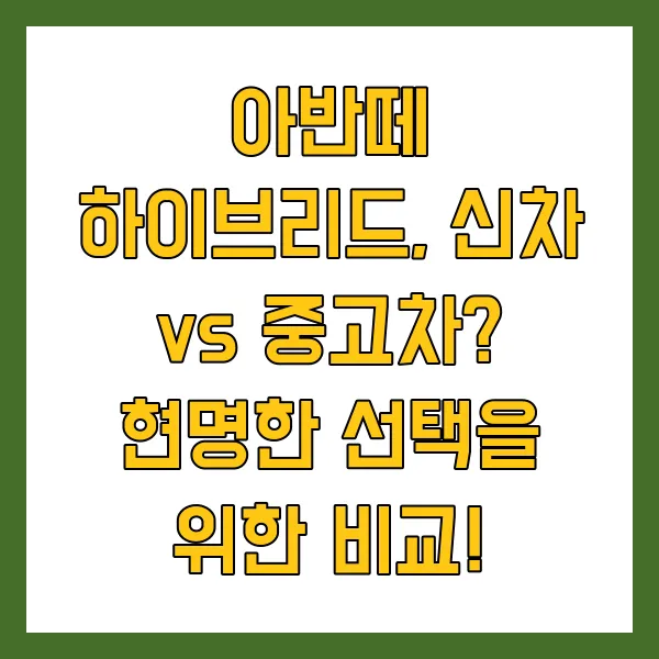 아반떼 하이브리드, 신차 vs 중고차? 현명한 선택을 위한 비교!