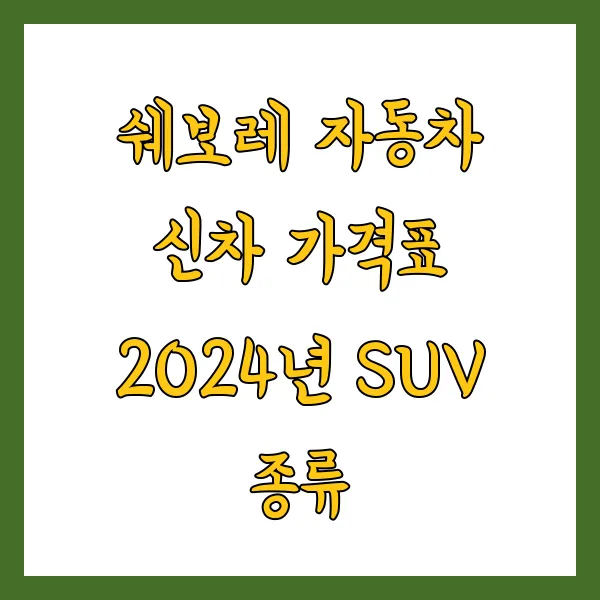 안녕하세요, 자동차를 사랑하는 여러분! 🚗 오늘은 많은 분들이 궁금해하시는 쉐보레 자동차의 2025년 신차 가격표, 특히 SUV 모델들을 중심으로 자세히 알아보는 시간을 가져볼 거예요. 마치 옆에서 친구와 함께 차를 고르듯, 친근하고 따뜻한 이야기로 풀어가 볼 테니 편안하게 읽어주세요! 😊