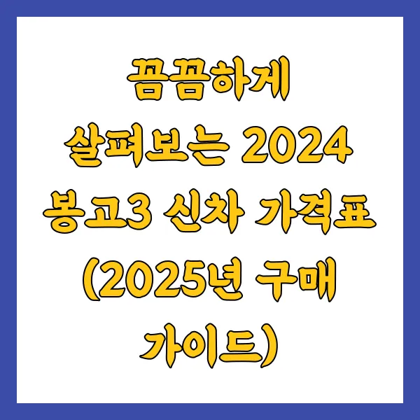 꼼꼼하게 살펴보는 2024 봉고3 신차 가격표 (2025년 구매 가이드)