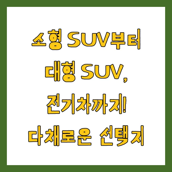 소형 SUV부터 대형 SUV, 전기차까지! 다채로운 선택지