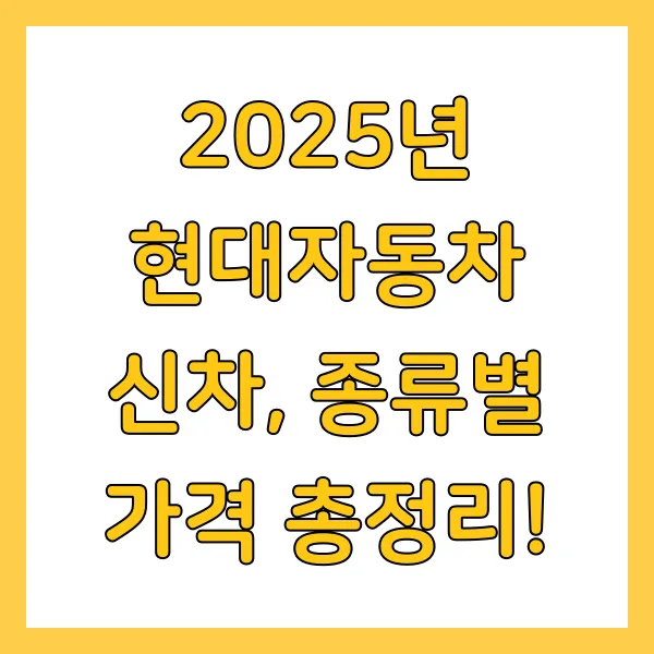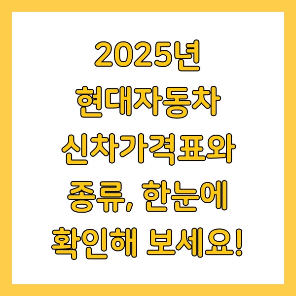 2025년 현대자동차 신차가격표와 종류, 한눈에 확인해 보세요! 🚗✨