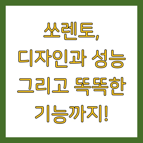 - 성능 제원 : 최대 281마력의 파워를 자랑하는 쏘렌토는 어떠한 주행 환경에서도 부족함 없는 성능을 보여줘요. 하이브리드 모델은 더욱 정숙하고 부드러운 주행감을 선사하면서도, 친환경적인 매력을 뽐내고 있고요. 배기량이나 최고출력 같은 상세 수치들은 위의 카탈로그에서 확인하실 수 있어요!