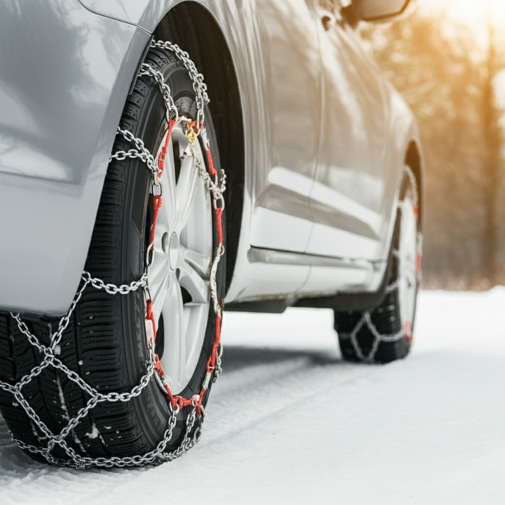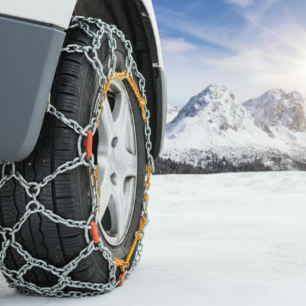 체인은 겨울철 눈길, 빙판길과 같은 미끄러운 도로에서 차량의 타이어에 부착해 마찰력을 증가시키는 장치입니다.
